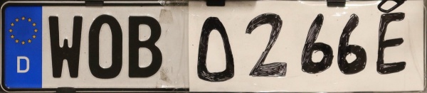 CURRENTLY ISSUED LICENSE PLATES SE BK 84 03/12 Seasonal plate, since 1997. Registration from the normal series. SE = Segeberg. Valid from March 1st until end of December. SE BK 84 03/12 Close-up of the above. FI AT 41 04/10 Seasonal plate, since 1997. Registration from the normal series. FI = Finsterwalde (1991-94 and optionally since 2013). Valid from April 1st until end of October. FI AT 41 04/10 Close-up of the above. SE BX 84 04/10 Seasonal plate, since 1997. Registration from the normal series. SE = Segeberg. Valid from April 1st until end of October. CW 04/11 /PI 17 Seasonal plate, since 1997. Registration from the normal series. CW = Calw. Valid from April 1st until end of November. CW 04/11 /PI 17 Close-up of the above. RW 04/10 /EJ 54 Seasonal plate, since 1997. Registration from the normal series. RW = Rottweil. Valid from April 1st until end of October. HH HY 998 04/10 Seasonal plate, since 1997. Registration from the normal series. HH = Hansestadt Hamburg. Valid from April 1st until end of October. HH HY 998 04/10 Close-up of the above. DD YQ 605 03/10 Seasonal plate, since 1997. Registration from the normal series. DD = Dresden (since 1991). Valid from March 1st until end of October. DD YQ 605 03/10 Close-up of the above. HH RS 278 10/03 Seasonal plate, since 1997. Registration from the normal series. HH = Hansestadt Hamburg. Unusually, this is valid in the autumn and winter from October 1st until end of March. HH RS 278 10/03 Close-up of the above. OF JB 972 08/09 Seasonal plate, since 1997. Registration from the normal series. OF = Offenbach. Valid from August 1st until end of September. TR KM 739 03/10 Seasonal plate, since 1997. Registration from the normal series. TR = Trier. Valid from March 1st until end of October. HH 03/11 /DU 400 Seasonal plate, since 1997. Registration from the normal series. HH = Hansestadt Hamburg. Valid from March 1st until end of November. HH 03/11 /DU 400 Close-up of the above. GF 04/10 /AR 692 Seasonal plate, since 1997. Registration from the normal series. GF = Gifhorn. Valid from April 1st until end of October. WL/GT 550 04/10 Seasonal plate, since 1997. Small size. Registration from the normal series. WL = Harburg (Winsen (Luhe)). Valid from April 1st until end of October. WL/GT 550 04/10 Close-up of the above. SU/MJ 215 03/10 Seasonal plate, since 1997. Small size. Registration from the normal series. SU = Rhein-Sieg-Kreis (Siegburg). Valid from March 1st until end of October. DEL L 1 05/10 Seasonal plate, since 1997. Registration from the normal series. DEL = Delmenhorst. Valid from May 1st until end of October. BBG/E 5 03/10 Seasonal plate, since 1997. Registration from the normal series. BBG = Bernburg (1991-2007). Valid from March 1st until end of October. MST J 623 04/10 Seasonal plate, since 1997. Registration from the normal series. MST = Mecklenburg-Strelitz (1994-2013 and optionally since 2013). Valid from April 1st until end of October. MST J 623 04/10 Close-up of the above. MKK A 401 04/10 Seasonal plate, since 1997. Registration from the normal series. MKK = Main- Kinzig-Kreis (since 2005). Valid from April 1st until end of October. MKK A 401 04/10 Close-up of the above. SIM R 267 01/04 Seasonal plate, since 1997. Registration from the normal series. SIM = Rhein- Hunsrück-Kreis (Simmern). Unusually, this is valid in the winter and spring from January 1st until end of April. SIM R 267 01/04 Close-up of the above. SÖM Z 443 03/10 Seasonal plate, since 1997. Registration from the normal series. SÖM = Sömmerda (since 1991). Valid from March 1st until end of October. DAU 04/10 /E 514 Seasonal plate, since 1997. Registration from the normal series. DAU = Daun. Valid from April 1st until end of October. MST RC 2 04/10 Seasonal plate, since 1997. Registration from the normal series. MST = Mecklenburg-Strelitz (since 1994). Valid from April 1st until end of October. MST RC 2 04/10 Close-up of the above. NOL CF 5 03/10 Seasonal plate, since 1997. Registration from the normal series. NOL = Niederschlesischer Oberlausitzkreis (1994-2008). Valid from March 1st until end of October. BOR 03/10 /GP 6 Seasonal plate, since 1997. Registration from the normal series. BOR = Borken. Valid from March 1st until end of October. BOR 03/10 /GP 6 Close-up of the above. LOS 04/09 /VG 4 Seasonal plate, since 1997. Registration from the normal series. LOS = Landkreis Oder-Spree (since 1994). Valid from April 1st until end of September. HDH FN 33 04/10 Seasonal plate, since 1997. Registration from the normal series. HDH = Heidenheim. Valid from April 1st until end of October. HDH FN 33 04/10 Close-up of the above. WES GC 42 04/10 Seasonal plate, since 1997. Registration from the normal series. WES = Wesel. Valid from April 1st until end of October. CHA 03/10 /XH 24 Seasonal plate, since 1997. Registration from the normal series. CHA = Cham. Valid from March 1st until end of October. B A 36 H Historical series since 1997. Registration from the normal series. B = Berlin. H = Historisch. H V 256 H Historical series since 1997. Registration from the normal series. The first H = Hannover. The last H = Historisch. H V 256 H Close-up of the above. A H 3000 H Historical series since 1997. Registration from the normal series. A = Augsburg. The last H = Historisch. Austin-Healey 3000. A H 3000 H Close-up of the above. B H 5511 H Historical series since 1997. Registration from the normal series. B = Berlin. The last H = Historisch. F D 2107 H Historical series since 1997. Registration from the normal series. F = Frankfurt am Main. H = Historisch. K W 1733 H Historical series since 1997. Registration from the normal series. K = Köln. H = Historisch. K W 1733 H Close-up of the above. F VG 1 H Historical series since 1997. Registration from the normal series. F = Frankfurt am Main. H = Historisch. W/CJ 4 H Historical series since 1997. Registration from the normal series. W = Wuppertal. H = Historisch. W/CJ 4 H Close-up of the above. C VW 82 H Historical series sin
