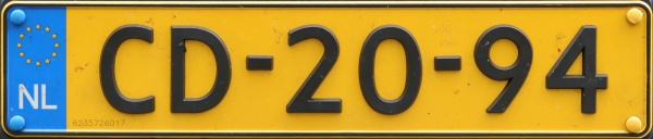 GBF-38-F Normal series since 2024. 2000 onwards plate style. No coding. GBF-38-F Close-up of the above. V-75-FXJ Light commercial series (< 3500 kg) since 2024. 2000 onwards plate style. V = Light commercial vehicle. V-75-FXJ Close-up of the above. V-12-KHP Light commercial series (< 3500 kg) since 2024. 2000 onwards plate style. V = Light commercial vehicle. V-12-KHP Close-up of the above. BB-740-H Heavy commercial series (> 3500 kg) since 2025. 2000 onwards plate style. The first B = Heavy commercial vehicle. BB-740-H Close-up of the above. 25/MJ-LK Motorcycle series since 2011. 2000 onwards plate style. M = Motorcycle. 25/MJ-LK Close-up of the above. 37/MB-SB Motorcycle series since 2011. 2000 onwards plate style. M = Motorcycle. 37/MB-SB Close-up of the above. 33/MB-TT Motorcycle series since 2011. 2000 onwards plate style. M = Motorcycle. 33/MB-TT Close-up of the above. CD-20-94 Diplomatic series since 1991. 2000 onwards plate style. CD = Corps Diplomatique. No country coding. Upon reaching CD-99-99 the series restarted from CD-00-01. CD-20-94 Close-up of the above. CD-35-80 Diplomatic series since 1991. 2000 onwards plate style. CD = Corps Diplomatique. No country coding. CD-69-45 Diplomatic series since 1991. 2000 onwards plate style. CD = Corps Diplomatique. No country coding. CD-69-45 Close-up of the above. CD-96-89 Diplomatic series since 1991. 2000 onwards plate style. CD = Corps Diplomatique. No country coding. CD-96-89 Close-up of the above. 57-CD-56 Diplomatic series since 1991. 2000 onwards plate style. CD = Corps Diplomatique. No country coding, but plates with CD between the numerals are for International Organizations. 57-CD-56 Close-up of the above. 04-CD-60 Diplomatic series since 1991. 2000 onwards plate style. CD = Corps Diplomatique. No country coding, but plates with CD between the numerals are for International Organizations. 40-CD-94 Diplomatic series since 1991. 2000 onwards plate style. CD = Corps Diplomatique. No country coding, but plates with CD between the numerals are for International Organizations. 40-CD-94 Close-up of the above. KM-99-57 Military series. 2000 onwards plate style. KM = Koninklijke Marine (Navy). KM-99-57 Close-up of the above. KO-91-45 Military series. 2000 onwards plate style. KO = Koninklijke Landmacht (Army). This appears to be an error plate with a zero used instead of the letter 'O'. KU-75-05 Military series. 2000 onwards plate style. KU = Koninklijke Landmacht (Army). KU-75-05 Close-up of the above. KW-00-75 Military series. 2000 onwards plate style. KW = Defence Interservice Command (DICO). KW-00-75 Close-up of the above. KW-60-00 Military series. KW = Defence Interservice Command (DICO). KW-90-43 Military series. KW = Defence Interservice Command (DICO). KW-90-43 Close-up of the above. KW-93-89 Military series. KW = Defence Interservice Command (DICO). KW-93-89 Close-up of the above. KZ-13-24 Military series. KZ = Koninklijke Landmacht (Army), but this was from the Koninklijke Marechausse (military police). KM-25-61 Military series. KM = Koninklijke Marine (Navy). Small size plate. KM-25-61 Close-up of the above. LM/11-29 Military series. LM = Koninklijke Luchtmacht (Air Force). LM/11-29 Close-up of the above. KM/21-51 Military series. KM = Koninklijke Marine (Navy). KT/90-44 Military series. KT = Koninklijke Landmacht (Army). LM/10-33 Military series. LM = Koninklijke Luchtmacht (Air Force). LM/10-33 Close-up of the above. LM/11-47 Military series. LM = Koninklijke Luchtmacht (Air Force). LM/11-47 Close-up of the above. 51-KZ-35 Military series. Letters in the middle first issued in 1985. 2000 onwards plate style (but only for staff cars). KZ = Koninklijke Landmacht (Army), but this was from the Koninklijke Marechausse (military police). 51-KZ-35 Close-up of the above. 57/KZ-92 Military series. Letters in the middle first issued in 1985. 2000 onwards plate style (but only for staff cars). KZ = Koninklijke Landmacht (Army). 57/KZ-92 Close-up of the above. 50-KZ-90 Military series. Letters in the middle first issued in 1985. KZ = Koninklijke Landmacht (Army). 40/KZ-59 Military series. Letters in the middle first issued in 1985. KZ = Koninklijke Landmacht (Army). 80-DMX-6 Military series. 2000 onwards plate style. DM first issued in the 2000's. DM = Military. 80-DMX-6 Close-up of the above. 23-DMG-6 Military series. 2000 onwards plate style. DM first issued in the 2000's. DM = Military. 23-DMG-6 Close-up of the above. DM-560-F Military series. 2000 onwards plate style. DM first issued in the 2000's. DM = Military. DM-560-F Close-up of the above. BN-96-74 Temporary series. 2000 onwards plate style. BN = Temporary/ foreigner. 90-00 - 99-99 = Private vehicles of International Organizations, U.S. and Belgian military personnel attached to NATO. BN-96-74 Close-up of the above. BN-84-31 Temporary series. 2000 onwards plate style. BN = Temporary/ foreigner. 80-00 - 88-99 = Non-diplomatic embassy personnel. BN-84-31 Close-up of the above. BN-95-62 Temporary series. 2000 onwards plate style. BN = Temporary/ foreigner. 90-00 - 99-99 = Private vehicles of International Organizations, U.S. and Belgian military personnel attached to NATO. BN-95-62 Close-up of the above. BN-98-17 Temporary series. 2000 onwards plate style. BN = Temporary/ foreigner. 90-00 - 99-99 = Private vehicles of International Organizations, U.S. and Belgian military personnel attached to NATO. BN-98-17 Close-up of the above. BN-98-51 Temporary series. 2000 onwards plate style. BN = Temporary/ foreigner. 90-00 - 99-99 = Private vehicles of International Organizations, U.S. and Belgian military personnel attached to NATO. GN-97-23 Temporary series. 2000 onwards plate style. GN = Temporary/ foreigner. 90-00 - 99-99 = Private vehicles of International Organizations, U.S. and Belgian military personnel attached to NATO. GN-99-27 Temporary series. 2000 onwards plate style. GN = Temporary/ foreigner. 90-00 - 99-99 = Private vehicles of International Organizations, U.S. and Belgi