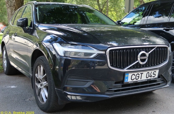 FZJ 55T Normal series since 2019. 2014 onwards plate style. No coding. FZJ 55T Close-up of the above. CGT 04S Normal series since 2019. 2014 onwards plate style. No coding. CGT 04S Close-up of the above. OUW 22G Normal series since 2019. 2014 onwards plate style. No coding. OUW 22G Close-up of the above. FZY 86X Normal series since 2019. 2014 onwards plate style. No coding. With an unofficial black band sticker. FZY 86X Close-up of the above. CGT 04S Normal series since 2019. 2014 onwards plate style. No coding. With an unofficial blue band sticker with the Swedish flag. CGT 04S Close-up of the above. COX 45J Normal series since 2019. Unofficial small sticker plate. No coding. COX 45J Close-up of the above. CMD 262 Normal series since 1972. 2014 onwards plate style. No coding. CMD 262 Close-up of the above. Chassis number The chassis number is shown on the plate along with a manufacturer code, in this case FO = Ford. Date The plate's date of manufacture, in this case 23rd May 2014. BLP 332 Normal series since 1972. 2014 onwards plate style. No coding. EJS 520 Normal series since 1972. 2014 onwards plate style. No coding. EJS 520 Close-up of the above. YAT 073 Normal series since 1972. 2014 onwards plate style. No coding. EAA 164 Normal series since 1972. 2014 onwards plate style. No coding. With an unofficial black band sticker. EAA 164 Close-up of the above. PCU 369 Normal series since 1972. 2014 onwards plate style. No coding. With an unofficial black band sticker. PCU 369 Close-up of the above. YUN 074 Normal series since 1972. 2014 onwards plate style. No coding. With an unofficial black band sticker with the Swedish flag. YUN 074 Close-up of the above. RWG 096 Normal series since 1972. 2014 onwards plate style. No coding. The euroband is about to disappear. RWG 096 Close-up of the above. EGO 176 Normal series since 1972. 2014 onwards plate style. No coding. The euroband has disappeared. EGO 176 Close-up of the above. YJY 337 Normal series since 1972. Unofficial plate style. No coding. The front plate was a Dutch export plate. ERT 167 Normal series since 1972. Unofficial plate style. No coding. ERT 167 Close-up of the above. ERT/167 Normal series since 1972. Unofficial plate style. No coding. ERT/167 Close-up of the above. WZJ 89M Normal series since 2019. 2017 onwards plate style. Small size. No coding. WZJ 89M Close-up of the above. CFU 35W Normal series since 2019. 2017 onwards plate style. Small size. No coding. CFU 35W Close-up of the above. NBN 14M Normal series since 2019. 2017 onwards plate style. Small size. No coding. NBN 14M Close-up of the above. SLL 409 Normal series since 1972. 2017 onwards plate style. Small size. No coding. SLL 409 Close-up of the above. CLX 329 Normal series since 1972. 2017 onwards plate style. Small size. No coding. The front plate was in 2014-17 style. CLX 329 Close-up of the above. TUC/58Y Normal series since 2019. 2014 onwards plate style. Motorcycle. No coding. TUC/58Y Close-up of the above. WBF/80R Normal series since 2019. Unofficial plate style. Motorcycle. No coding. WBF/80R Close-up of the above. XEX/813 Normal series since 1972. 2014 onwards plate style. Motorcycle. No coding. XEX/813 Close-up of the above. ERS/664 Normal series since 1972. 2014 onwards plate style. Motorcycle. No coding. ERS/664 Close-up of the above. ZKX/098 Normal series since 1972. 2014 onwards plate style. Moped. No coding. ZKX/098 Close-up of the above. CLC Personalised series since 1988. 2014 onwards plate style. CLC = Claes Lindberg Covershow. CLC Close-up of the above. SWK Personalised series since 1988. 2014 onwards plate style. SWK Close-up of the above. BJ 7 Personalised series since 1988. 2014 onwards plate style. BJ 7 = Austin-Healey BJ 7. BJ 7 Close-up of the above. LG11 Personalised series since 1988. 2014 onwards plate style. LG11 Close-up of the above. LÖÖF Personalised series since 1988. 2014 onwards plate style. LÖÖF Close-up of the above. AX 33 Personalised series since 1988. 2014 onwards plate style. AX = Axelssons Turisttrafik AB. AX 33 Close-up of the above. AX 30 Personalised series since 1988. 2014 onwards plate style. AX = Axelssons Turisttrafik AB. 44444 Personalised series since 1988. 2014 onwards plate style. 44444 Close-up of the above. 2SLOW Personalised series since 1988. 2014 onwards plate style. 2SLOW Close-up of the above. NANNE Personalised series since 1988. 2014 onwards plate style. NANNE Close-up of the above. BEVIZ Personalised series since 1988. 2014 onwards plate style. BEVIZ Close-up of the above. LEONA Personalised series since 1988. 2014 onwards plate style. LEONA Close-up of the above. SONAX Personalised series since 1988. 2014 onwards plate style. SONAX Close-up of the above. WEMPA Personalised series since 1988. 2014 onwards plate style. SONAX5 Personalised series since 1988. 2014 onwards plate style. SONAX5 Close-up of the above. LARÖDS Personalised series since 1988. 2014 onwards plate style. LARÖDS Close-up of the above. BOSSEN Personalised series since 1988. 2014 onwards plate style. BOSSEN Close-up of the above. BULDRE Personalised series since 1988. 2014 onwards plate style. BULDRE Close-up of the above. LEKBIL Personalised series since 1988. 2014 onwards plate style. LEKBIL Close-up of the above. MAXXAD Personalised series since 1988. 2014 onwards plate style. MAXXAD Close-up of the above. MAXXAD Unofficial sticker front plate. MAXXAD Close-up of the front plate. LBUSS 2 Personalised series since 1988. 2014 onwards plate style. LBUSS = LarssonBuss. LBUSS 2 Close-up of the above. LBUSS 1 Personalised series since 1988. 2014 onwards plate style. LBUSS = LarssonBuss. LBUSS 1 Close-up of the above. DR OMAR Personalised series since 1988. 2014 onwards plate style. DR OMAR Close-up of the above. A99999A Personalised series since 1988. 2014 onwards plate style. A99999A Close-up of the above. UN1CORN Personalised series since 1988. 2014 onwards plate style. UN1CORN Close-up of the above. LETSGO1 Personalised series sin