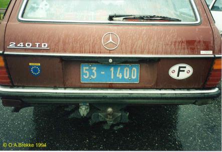 Belgium. Temporary series 1994-2010. 1994-2000 plate style. Rear plate with stickers. Blue stickers