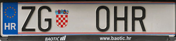 KA 749-JU Normal series since 1992. 2016 onwards plate style. Originally with only one serial letter, but that was soon exhausted in larger provinces. KA = Karlovac. KA 749-JU Close-up of the above. ČK 873-HI Normal series since 1992. 2016 onwards plate style. Originally with only one serial letter, but that was soon exhausted in larger provinces. ČK = Čakovec. ČK 873-HI Close-up of the above. DU 962-JV Normal series since 1992. 2016 onwards plate style. Originally with only one serial letter, but that was soon exhausted in larger provinces. DU = Dubrovnik. DU 962-JV Close-up of the above. PU 421-VD Normal series since 1992. 2016 onwards plate style. Originally with only one serial letter, but that was soon exhausted in larger provinces. PU = Pula. PU 421-VD Close-up of the above. SL 872-AK Normal series since 1992. 2016 onwards plate style. Originally with only one serial letter, but that was soon exhausted in larger provinces. SL = Slatina (since 1993). SL 872-AK Close-up of the above. ST 535-ZI Normal series since 1992. 2016 onwards plate style. Originally with only one serial letter, but that was soon exhausted in larger provinces. ST = Split. ST 535-ZI Close-up of the above. ST 6666-H Normal series since 1992. 2016 onwards plate style. Four numerals and one letter, first in Zagreb, since c.1997. ST = Split. The driver and owner told me this was not personalised. ST 6666-H Close-up of the above. RI 8754-D Normal series since 1992. 2016 onwards plate style. Four numerals and one letter, first in Zagreb, since c.1997. RI = Rijeka. ZG 6884-HT Normal series since 1992. 2016 onwards plate style. Four numerals and two letters, first in Zagreb, since 2001. ZG = Zagreb. ZG 6884-HT Close-up of the above. ZG 2117-GF Normal series since 1992. 2016 onwards plate style. Four numerals and two letters, first in Zagreb, since 2001. ZG = Zagreb. ZG 2117-GF Close-up of the above. ZG 2093-GN Normal series since 1992. 2016 onwards plate style. Four numerals and two letters, first in Zagreb, since 2001. ZG = Zagreb. ZG 2093-GN Close-up of the above. ZG OHR Personalised series since 1992. 2016 onwards plate style. ZG = Zagreb. ZG OHR Close-up of the above. KA CB-0041 Personalised series since 1992. 2016 onwards plate style. KA = Karlovac. KA CB-0041 Close-up of the above. BJ/206/GZ Normal series since 1992. 2016 onwards plate style. Motorcycle. BJ = Bjelovar. BJ/206/GZ Close-up of the above. ST/1235/V Normal series since 1992. 2016 onwards plate style. Motorcycle. Four numerals and one letter, first in Zagreb, since c.1997. ST = Split. ST/1235/V Close-up of the above. ZG/9619/GU Normal series since 1992. 2016 onwards plate style. Motorcycle. Four numerals and two letters, first in Zagreb, since 2001. ZG = Zagreb. ZG/9619/GU Close-up of the above. ST/2355/AA Normal series since 1992. 2016 onwards plate style. Motorcycle. Four numerals and two letters, first in Zagreb, since 2001. ST = Split. ST/2355/AA Close-up of the above. ZG/5436/JO Normal series since 1992. 2016 onwards plate style. Motorcycle. Four numerals and two letters, first in Zagreb, since 2001. ZG = Zagreb. ZG/5436/JO Close-up of the above. DA/1250/GS Personalised plate within the normal series since 1992. 2016 onwards plate style. Motorcycle. DA = Daruvar. A BMW R 1250 GS. DA/1250/GS Close-up of the above. ZG/5454/SZ Personalised plate within the normal series since 1992. 2016 onwards plate style. Motorcycle. ZG = Zagreb. 036-M-001 Diplomatic series since c.1994. 036 = United Nations High Commisioner for Refugees. M = Foreign missions. 036-M-001 Close-up of the above. SL 761-R Normal series since 1992. 1992-2016 plate style. SL = Slatina (since 1993). SL 761-R Close-up of the above. DA 740-V Normal series since 1992. 1992-2016 plate style. DA = Daruvar. SL 612-R Normal series since 1992. 1992-2016 plate style. SL = Slatina (since 1993). SL 762-R Normal series since 1992. 1992-2016 plate style. SL = Slatina (since 1993). SL 762-R Close-up of the above. SL 216-S Normal series since 1992. 1992-2016 plate style. SL = Slatina (since 1993). SL 216-S Close-up of the above. VŽ 410-KP Normal series since 1992. 1992-2016 plate style. Originally with only one serial letter, but that was soon exhausted in larger provinces. VŽ = Varaždin. VŽ 410-KP Close-up of the above. PU 723-JJ Normal series since 1992. 1992-2016 plate style. Originally with only one serial letter, but that was soon exhausted in larger provinces. PU = Pula. PU 723-JJ Close-up of the above. PŽ 126-CI Normal series since 1992. 1992-2016 plate style. Originally with only one serial letter, but that was soon exhausted in larger provinces. PŽ = Požega. PŽ 126-CI Close-up of the above. RI 691-OV Normal series since 1992. 1992-2016 plate style. Originally with only one serial letter, but that was soon exhausted in larger provinces. RI = Rijeka. RI 691-OV Close-up of the above. ZD 509-AJ Normal series since 1992. 1992-2016 plate style. Originally with only one serial letter, but that was soon exhausted in larger provinces. ZD = Zadar. ZG 724-OO Normal series since 1992. 1992-2016 plate style. Originally with only one serial letter, but that was soon exhausted in larger provinces. ZG = Zagreb. This shows the use of serial letters OO. ZG 728-ZI Normal series since 1992. 1992-2016 plate style. Originally with only one serial letter, but that was soon exhausted in larger provinces. ZG = Zagreb. OS/866-DH Normal series since 1992. 1992-2016 plate style. Originally with only one serial letter, but that was soon exhausted in larger provinces. OS = Osijek. ZG 2366-D Normal series since 1992. 1992-2016 plate style. Four numerals and one letter, first in Zagreb, since c.1997. ZG = Zagreb. ZG 1811-EG Normal series since 1992. 1992-2016 plate style. Four numerals and two letters, first in Zagreb, since 2001. ZG = Zagreb. ZG 1811-EG Close-up of the above. ZG 1295-AB Normal series since 1992. 1992-2016 plate style. Four numerals and two letters, first in Zagreb, since 2001. ZG = Zagreb. ZG/8862-