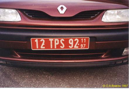 Temporary transit series 1994-2009. TLA-TSZ = Renault. 92 = Hauts-de-Seine. Valid until end of