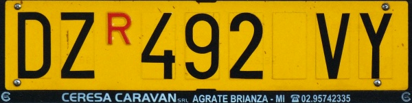 Trailer repeater series 1994-2013. R = Trailer (rimorchio). These plates repeat the registration of
