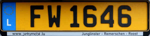 VC 9133 Normal series since 2003. No coding. VC 9133 Close-up of the above. BN 9918 Normal series since 2003. No coding. BN 9918 Close-up of the above. DH 8326 Normal series since 2003. No coding. DH 8326 Close-up of the above. QM 8858 Normal series since 2003. No coding. TL 5348 Normal series since 2003. No coding. Trailers are now included in the normal series. TL 5348 Close-up of the above. TZ 8557 Normal series since 2003. No coding. TZ 8557 Close-up of the above. XM 5519 Normal series since 2003. No coding. XM 5519 Close-up of the above. YQ 6147 Normal series since 2003. No coding. ZQ 7132 Normal series since 2003. No coding. ZQ 9049 Normal series since 2003. No coding. ZQ 9049 Close-up of the above. EW/6465 Normal series since 2003. No coding. EW/6465 Close-up of the above. XH/6457 Normal series since 2003. No coding. XH/6457 Close-up of the above. HH 1019 Personalised within the normal series since 2003. All serials below 4000 are personalised. HH 1019 Close-up of the above. AP 1995 Personalised within the normal series since 2003. All serials below 4000 are personalised. AP 1995 Close-up of the above. DS 3110 Personalised within the normal series since 2003. All serials below 4000 are personalised. EW 0306 Personalised within the normal series since 2003. All serials below 4000 are personalised. EW = Emile Weber. EW 0306 Close-up of the above. EW 0602 Personalised within the normal series since 2003. All serials below 4000 are personalised. EW = Emile Weber. EW 0602 Close-up of the above. EW 0818 Personalised within the normal series since 2003. All serials below 4000 are personalised. EW = Emile Weber. EW 1614 Personalised within the normal series since 2003. All serials below 4000 are personalised. EW = Emile Weber. EW 1614 Close-up of the above. FA 1988 Personalised within the normal series since 2003. All serials below 4000 are personalised. FU 1004 Personalised within the normal series since 2003. All serials below 4000 are personalised. FU 1004 Close-up of the above. FW 1646 Personalised within the normal series since 2003. All serials below 4000 are personalised. FW 1646 Close-up of the above. JD 7001 Personalised within the normal series since 2003. JD 7... not yet used in the normal series at the time. LF 0311 Personalised within the normal series since 2003. All serials below 4000 are personalised. Serials with leading zeroes are often remakes of the former series. LF 0311 Close-up of the above. MJ 0501 Personalised within the normal series since 2003. All serials below 4000 are personalised. Serials with leading zeroes are often remakes of the former series. MJ 0501 Close-up of the above. PM 1256 Personalised within the normal series since 2003. All serials below 4000 are personalised. PM 1256 Close-up of the above. QL 4000 Personalised within the normal series since 2003. QL 4000 Close-up of the above. TW 9002 Personalised within the normal series since 2003. TW 9... not yet used in the normal series at the time. TW = Twerenbold. TW 9002 Close-up of the above. XL 7777 Personalised within the normal series since 2003. XL 7... not yet used in the normal series at the time. XL 7777 Close-up of the above. VC/2020 Personalised within the normal series since 2003. All serials below 4000 are personalised. VC 2020 on a Volvo C202. VC/2020 Close-up of the above. AM/0510 Personalised within the normal series since 2003. All serials below 4000 are personalised. Serials with leading zeroes are often remakes of the former series. AM/0510 Close-up of the above. QE/8711 Normal series since 2003. Motorcycle. No coding. QE/8711 Close-up of the above. EA/9314 Normal series since 2003. Motorcycle. No coding. EA/9314 Close-up of the above. MH/5249 Normal series since 2003. Motorcycle. No coding. MH/5249 Close-up of the above. GS/1313 Personalised within the normal series since 2003. Motorcycle. All serials below 4000 are personalised. GS = BMW GS. GS/1313 Close-up of the above. 6577 Normal series 1945-66, reissued in 2003 onwards style. No coding. 6577 Close-up of the above. 3757 Normal series 1945-66, reissued in 2003 onwards style. No coding. 3757 Close-up of the above. 16296 Normal series 1945-66, reissued in 2003 onwards style. No coding. 16296 Close-up of the above. 18513 Normal series 1945-66, reissued in 2003 onwards style. No coding. 18513 Close-up of the above. 51277 Normal series 1945-66, reissued in 2003 onwards style. No coding. 51277 Close-up of the above. 54613 Normal series 1945-66, reissued in 2003 onwards style. No coding. 64425 Normal series 1945-66, reissued in 2003 onwards style. No coding. 64425 Close-up of the above. 88669 Normal series 1945-66, reissued in 2003 onwards style. No coding. 88669 Close-up of the above. /21598 Normal series 1945-66, reissued in 2003 onwards style. No coding. /21598 Close-up of the above. 49260 Motorcycle series until around 1990, reissued in 2003 onwards style. No coding. 49260 Close-up of the above. 19425 Motorcycle series until around 1990, reissued in 2003 onwards style. No coding. CD 84-27 Diplomatic series since 2003. CD = Corps Diplomatique. 84 = EFTA court. CD 84-27 Close-up of the above. CD 84-25 Diplomatic series since 2003. CD = Corps Diplomatique. 84 = EFTA court. U 2046 Commercial series 1966-2003. 1971-88 rear plate style. U = Commercial vehicles. R 7664 Trailer series 1966-2003. 1971-88 plate style. R = Trailer. 7411 Normal series 1945-66, reissued in 1974-2003 front plate style. No coding. 1351 Normal series 1945-66, reissued in 1988-2003 rear plate style. No coding. 75333 Normal series 1945-66, reissued in 1974-2003 front plate style. No coding. 91244 Normal series 1945-66, reissued in 1988-2003 rear plate style. No coding. 13514 Motorcycle series until around 1990. No coding. The (L) oval is part of the plate. 13514 Close-up of the above. 67101 Motorcycle series until around 1990. No coding. The owner of this one chose the number himself: 67 for his year of birth. The (L) oval is part of the plate. XF 450 Normal series 
