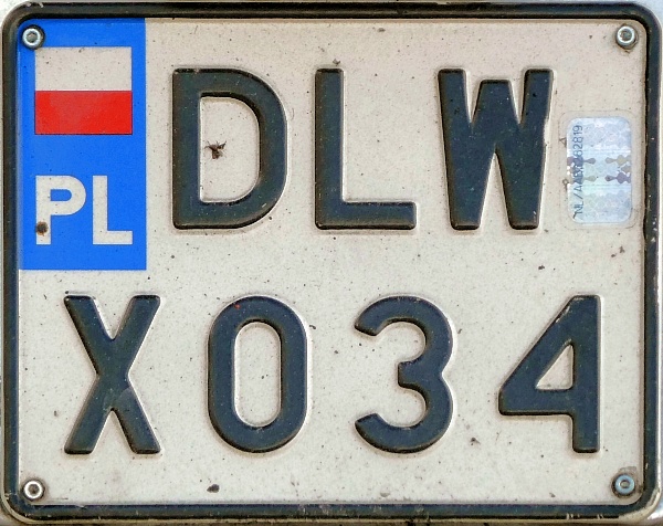 Motorcycle series since 2000. 2000-06 plate style. DL = Legnica town in D = Dolnośląskie province.