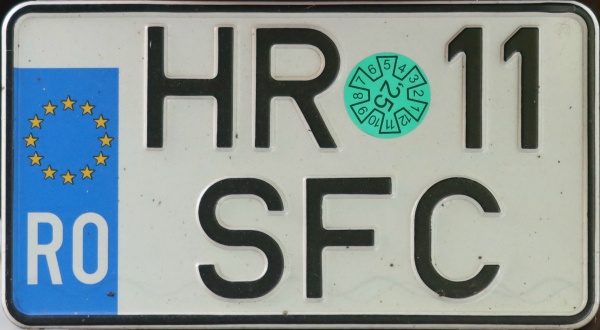 B 208 GAB Normal series since 2010 in Bucuresti. 2007 onwards plate style. The first B = Bucuresti. B 208 GAB Close-up of the above. MM 08 TCI Normal series since 1992. 2007 onwards plate style. MM = Maramureş. MM 08 TCI Close-up of the above. AR 08 TWH Normal series since 1992. 2007 onwards plate style. AR = Arad. GJ 04 UJP Normal series since 1992. 2007 onwards plate style. GJ = Gorj. GJ 04 UJP Close-up of the above. CJ 13 SSO Normal series since 1992. 2007 onwards plate style. CJ = Cluj. CJ 13 SSO Normal series since 1992. 2007 onwards plate style. CJ = Cluj. This is a Spanish trailer with a repeater plate of the Romanian towing vehicle. The Spanish trailer registration is R 7199 BCG. Trailer series over 750 kg since 1999. R = Remolque (trailer). CJ 13 SSO Close-up of the above. CJ 48/GAL Normal series since 1992. 2007 onwards plate style. CJ = Cluj. CJ 48/GAL Close-up of the above. SV 34/BBY Normal series since 1992. 2007 onwards plate style. SV = Suceava. SV 34/BBY Close-up of the above. B 999 EEB Normal series since 2010 in Bucuresti. 2007 onwards plate style. The first B = Bucuresti. Owners may select numbers and letters for an additional fee. B 999 EEB Close-up of the above. B 111 YUL Normal series since 2010 in Bucuresti. 2007 onwards plate style. B = Bucuresti. Owners may select numbers and letters for an additional fee. B 111 YUL Close-up of the above. B 140 CHR Normal series since 2010 in Bucuresti. 2007 onwards plate style. B = Bucuresti. Owners may select numbers and letters for an additional fee. In this case CHR = Christian Tour. B 140 CHR Close-up of the above. BH 99 ARO Normal series since 1992. 2007 onwards plate style. BH = Bihor. Owners may select numbers and letters for an additional fee. BH 99 ARO Close-up of the above. B 812/MIN Normal series since 2010 in Bucuresti. Motorcycle. 2007 onwards plate style. B = Bucuresti. B 812/MIN Close-up of the above. SB 81/WLD Normal series since 1992. Motorcycle. 2007 onwards plate style. SB = Sibiu. SB 81/WLD Close-up of the above. HR 11/SFC Normal series since 1992. Motorcycle. 2007 onwards plate style. HR = Harghita. HR 11/SFC Close-up of the above. TM 87/NAG Normal series since 1992. Motorcycle. 2007 onwards plate style. TM = Timiș. TM 87/NAG Close-up of the above. BR 04/EVA Normal series since 1992. Motorcycle. 2007 onwards plate style. BR = Brăila. Owners may select numbers and letters for an additional fee. BR 04/EVA Close-up of the above. AG 19 DKP Electric vehicle series since 2022. Registration from the normal series. Green lettering = Electric vehicles. AG = Arges. AG 19 DKP Close-up of the above. B 62 ACZ Normal series in Bucuresti 1992-2009. 1992-2007 plate style. B = Bucuresti. B 62 ACZ Close-up of the above. B 29 VDV Normal series in Bucuresti 1992-2009. 1992-2007 plate style. B = Bucuresti. B 55 TYV Normal series in Bucuresti 1992-2009. 1992-2007 plate style. B = Bucuresti. B 55 TYV Close-up of the above. B 72 LED Normal series since 1992. The euroband is a privately added sticker. B = Bucuresti. B 72 LED Close-up of the above. CJ 08 ERJ Normal series since 1992. 1992-2007 plate style. CJ = Cluj. CJ 08 ERJ Close-up of the above. BC 03 CDO Normal series since 1992. 1992-2007 plate style. BC = Bacău. CJ 02 AFM Normal series since 1992. 1992-2007 plate style. CJ = Cluj. IS 07 MYT Normal series since 1992. 1992-2007 plate style. IS = Iasi. PH 06 MPA Normal series since 1992. 1992-2007 plate style. PH = Prahova. PH-06-MPA Normal series since 1992. PH = Prahova. This is a home made replacement plate, rear plate of the above. HR 05 GDT Normal series since 1992. The euroband is a privately added sticker. HR = Harghita. TM 08/GYP Normal series since 1992. 1992-2007 plate style. TM = Timis. B 80 RRX Trailer series in Bucuresti 1992-late 1990s(?). 1992-2007 plate style. B = Bucuresti. 80 = Trailer. The use of this special series has been discontinued. B 44 JOY Normal series in Bucuresti 1992-2009. 1992-2007 plate style. B = Bucuresti. Owners may select numbers and letters for an additional fee. AR 18 AUG Normal series since 1992. 1992-2007 plate style. AR = Arad. Owners may select numbers and letters for an additional fee. VS 09/SZL Normal series since 1992. Motorcycle. 1992-2007 plate style. VS = Vaslui. VS 09/SZL Close-up of the above. CD 116 114 Diplomatic series since 1992. 1992-2007 plate style. CD = Corps Diplomatique. 116 = North Korea. CD 127/218 Diplomatic series since 1992. 1992-2007 plate style. CD = Corps Diplomatique. 127 = Germany. B 69 XFZ Normal series in Bucuresti 1992-2009. 2007 onwards plate style. B = Bucuresti. B 69 XFZ Close-up of the above. B 01 YIA Normal series in Bucuresti 1992-2009. 2007 onwards plate style. B = Bucuresti. B 01 YIA Close-up of the above. B 63 NTV Normal series in Bucuresti 1992-2009. 2007 onwards plate style. B = Bucuresti. B 71 PPS Normal series in Bucuresti 1992-2009. 2007 onwards plate style. B = Bucuresti. B 73 TXI Normal series in Bucuresti 1992-2009. 2007 onwards plate style. B = Bucuresti. B 83 BUN Normal series in Bucuresti 1992-2009. 2007 onwards plate style. The first B = Bucuresti. Owners may select numbers and letters for an additional fee. Bun = good. B 83 BUN Close-up of the above. B 96 SKI Normal series in Bucuresti 1992-2009. 2007 onwards plate style. B = Bucuresti. Owners may select numbers and letters for an additional fee. This vehicle belongs to the Romanian biathlon team. B 96 SKI Close-up of the above. B 43/FLD Normal series in Bucuresti 1992-2009. Motorcycle. 2007 onwards plate style. B = Bucuresti. B 43/FLD Close-up of the above. OBSOLETE LICENSE PLATES - NO LONGER VALID 1-B 54577 Normal series 1968-92. Since 1985 five digit serial number in Bucuresti. B = Bucuresti. 1 = Cars, taxis, private buses. This was a caravan with the same registration as the towing vehicle. 2-SV 5735 Normal series 1968-92. SV = Suceava. 2 = Cars, taxis, private buses. B 9261 Temporary series since 1992. 1992-2007 plate style. B = Bucuresti. Valid until December 1999. B 49133 Te