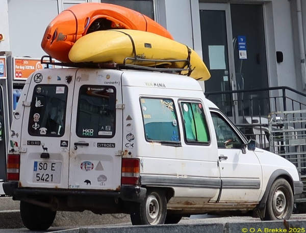 6946 MBG Normal series since 2000. No coding. 6946 MBG Close-up of the above. 3906 BKX Normal series since 2000. No coding. 0889 CLG Normal series since 2000. No coding. 0889 CLG Close-up of the above. 1657 DTP Normal series since 2000. No coding. 1657 DTP Close-up of the above. 7995 FJH Normal series since 2000. No coding. 2463 HRR Normal series since 2000. No coding. With the blue band covered by a piece of tape. 2463 HRR Close-up of the above. 2744 KNT Normal series since 2000. No coding. Trailers under 750 kg display the registration of the towing vehicle. 5124/HFS Normal series since 2000. No coding. 5124/HFS Close-up of the above. 5974/BDX Normal series since 2000. No coding. 1215 HCP Normal series since 2000. Small plate. No coding. 1215 HCP Close-up of the above. 7995 FJH Normal series since 2000. Small plate. No coding. 3806/KTZ Normal series since 2000. Motorcycle. No coding. 3806/KTZ Close-up of the above. 6811/BLF Normal series since 2000. Motorcycle. No coding. 3612/FFB Normal series since 2000. Motorcycle. No coding. 3612/FFB Close-up of the above. 1579 BHS SP Public service vehicle. Supplementary SP plates have been used at least since 1935. Registration from the normal series. SP = Servicio Publico (Public Service). H 1112 BBB Historical vehicle series since 1999. H = Historical. P 0648 BDJ Provisional series since 1999. P = Provisional. Small size lettering. P 0648 BDJ Close-up of the above. P 7291 BBD Provisional series since 1999. P = Provisional. Small size lettering. P 2370 BDK Provisional series since 1999. P = Provisional. P 2370 BDK Close-up of the above. P-9256-BBD Provisional series since 1999. P = Provisional. With hyphens. R 9933 BCK Trailer series over 750 kg since 1999. R = Remolque (trailer). Trailers also display the registration of the towing vehicle, in this case 3591 FPW. R 9933 BCK Close-up of the above. R 5456 BBD Trailer series over 750 kg since 1999. R = Remolque (trailer). R 7199 BCG Trailer series over 750 kg since 1999. R = Remolque (trailer). R 7199 BCG Trailer series over 750 kg since 1999. R = Remolque (trailer). Trailers also display the registration of the towing vehicle, in this case the Romanian CJ 13 SSO. Normal series since 1992. 2007 onwards plate style. CJ = Cluj. R 7199 BCG Close-up of the above. R 0316 BCJ Trailer series over 750 kg since 1999. R = Remolque (trailer). R 0316 BCJ Trailer series over 750 kg since 1999. R = Remolque (trailer). Trailers also display the registration of the towing vehicle, in this case 8802 GPX. R 0316 BCJ Close-up of the above. R 8872 BCV Trailer series over 750 kg since 1999. Flat plastic plate. R = Remolque (trailer). Trailers also display the registration of the towing vehicle, in this case 5069 JKS. R 8872 BCV Close-up of the above. R0 288 BCW Trailer series over 750 kg since 1999. R = Remolque (trailer). This plate is erroneously spaced. R0 288 BCW Close-up of the above. S 4325 BBV New vehicle dealer series since 1999. S = New vehicle dealer. Valid until end of March, but the year is missing. S 4325 BBV Close-up of the above. CD 55 036 Diplomatic series since 2000. CD = Corps Diplomatique. 55 = Norway. CD 70/030 Diplomatic series since 2000. CD = Corps Diplomatique. 70 = Switzerland. CD 70/030 Close-up of the above. TA 30 014 Diplomatic series since 2000. TA = Technical and administrative personnel. 30 = France. TA 30 014 Close-up of the above. C0/736/BSF Moped series since 1999. C = Mopeds and scooters (ciclomotor). C0/736/BSF Close-up of the above. C4/091/BFR Moped series since 1999. C = Mopeds and scooters (ciclomotor). B-67443 Normal series 1900-71. Since 1923 five numerals in some provinces. B = Barcelona. B-67443 Close-up of the above. Z-9051-N Normal series 1971-2000. 1971-87 lettering style. Z = Zaragoza. B-2061-HN Normal series 1971-2000. Since 1973 two serial letters in some provinces. 1971-87 lettering style. B = Barcelona. M-GJ/6591 Normal series 1971-2000. Since 1973 two serial letters in some provinces. 1971-87 lettering style. M = Madrid. GC-0915-V Normal series 1971-2000. 1971-87 lettering style. GC = Las Palmas province (Gran Canaria). GC-2246-H Normal series 1971-2000. 1971-87 lettering style. GC = Las Palmas province (Gran Canaria). GC-6258-Y Normal series 1971-2000. 1971-87 lettering style. GC = Las Palmas province (Gran Canaria). L-9027-P Normal series 1971-2000. 1987-2000 lettering style. L = Lérida. L-W/4166 Normal series 1971-2000. 1987-2000 lettering style. L = Lérida. B-2299-PJ Normal series 1971-2000. Since 1973 two serial letters in some provinces. 1987-2000 lettering style. B = Barcelona. Five months later I photographed the same vehicle with new style plates. B-2299-PJ Close-up of the above. A-8522-CZ Normal series 1971-2000. Since 1973 two serial letters in some provinces. 1987-2000 lettering style. A = Alicante. A-8522-CZ Close-up of the above. B-4551-OM Normal series 1971-2000. Since 1973 two serial letters in some provinces. 1987-2000 lettering style. B = Barcelona. M-5906-TJ Normal series 1971-2000. Since 1973 two serial letters in some provinces. 1987-2000 lettering style. M = Madrid. V-4030-EH Normal series 1971-2000. Since 1973 two serial letters in some provinces. 1987-2000 lettering style. V = Valencia. M-0140-YZ Normal series 1971-2000. Since 1973 two serial letters in some provinces. Unofficial small plate. 1987-2000 lettering style. M = Madrid. B-LN/9004 Normal series 1971-2000. Since 1973 two serial letters in some provinces. 1987-2000 lettering style. B = Barcelona. ZA-7616-I Normal series 1971-2000. 1987-2000 lettering style. ZA = Zamora. AL-Z/9787 Normal series 1971-2000. 1987-2000 lettering style. AL = Almería. CO-2783-AL Normal series 1971-2000. Since 1973 two serial letters in some provinces. 1987-2000 lettering style. CO = Córdoba. CO-2783-AL Close-up of the above. GC-1555-BM Normal series 1971-2000. Since 1973 two serial letters in some provinces. 1987-2000 lettering style. GC = Las Palmas province (Gran Canaria). With unofficial oval IC = Isla
