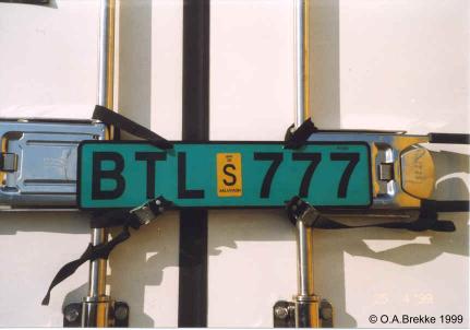 Dealer plate series since 1972. 1994-2001 plate style. No coding in the registration, but on the