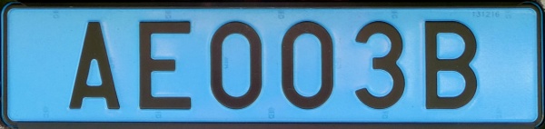 Diplomatic series since 1988. 2010-13 plate style. AE = Armenia. B = Embassy owned vehicles.