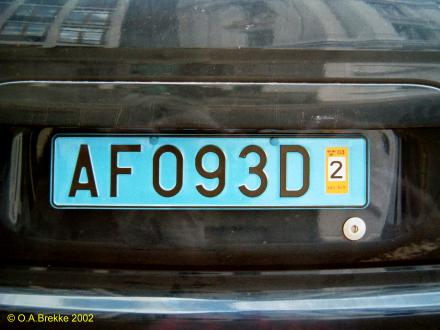 Temporary series since 2001. 2001-13 plate style. Registration from the normal series. No coding.